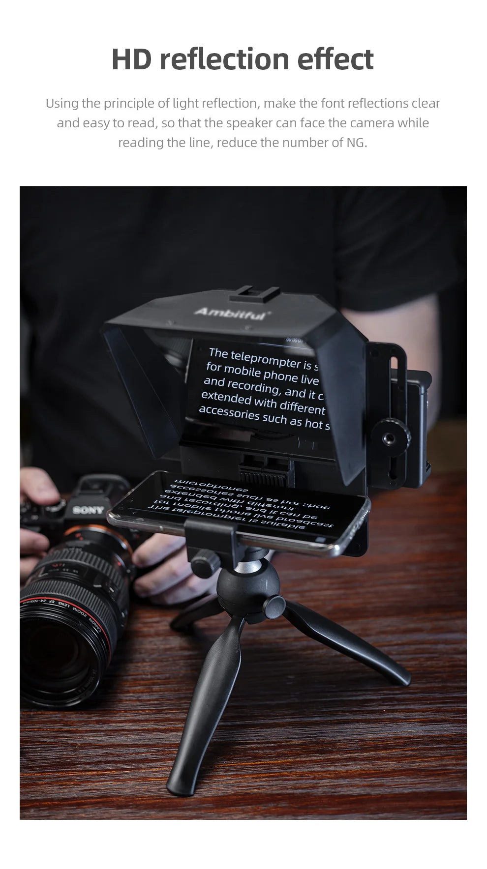 Teleprompter Portátil AMBITFUL Mini – Compatible con Smartphones y Cámaras