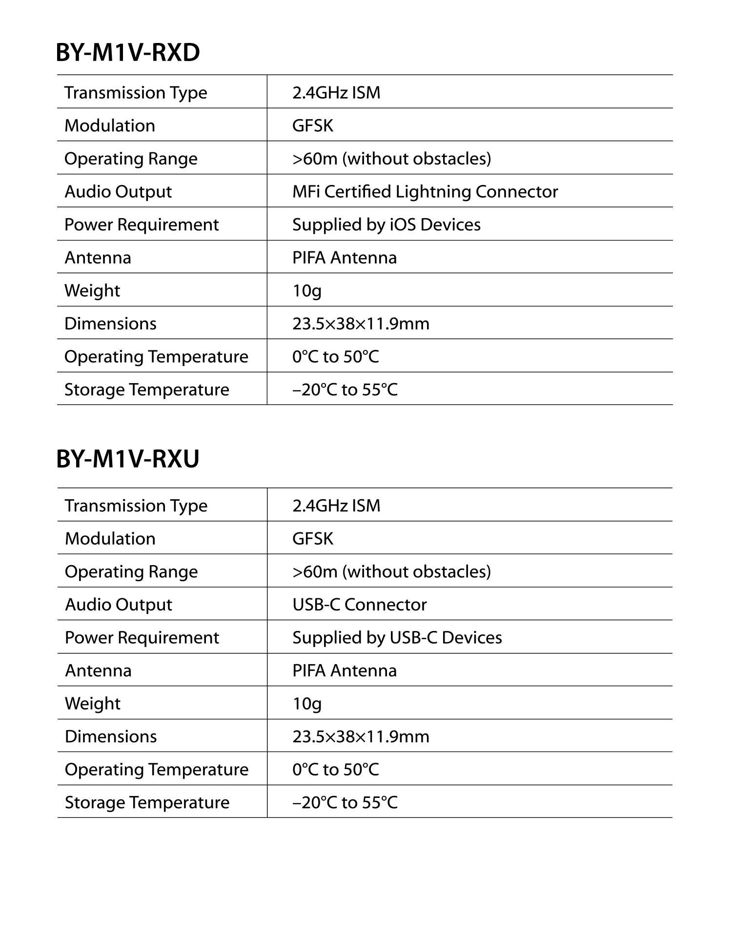 BY-M1V5/6: Compatible con iPhone/iOS.