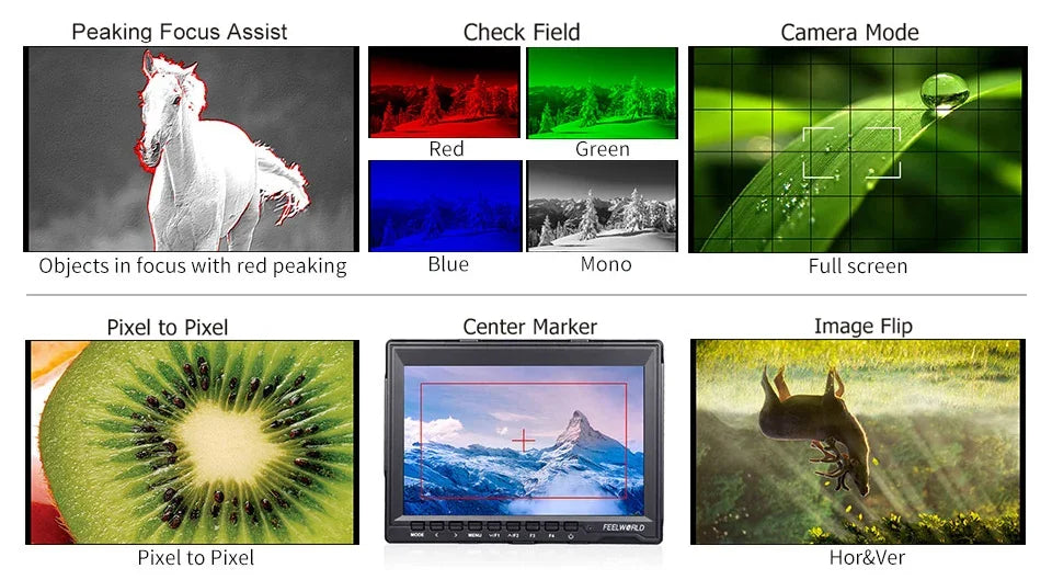 Feelworld FW759 7 Inch IPS 1280x800 Camera Field DSLR Video Monitor with Peaking Focus HD 7" LCD Monitor for BMPCC Canon Sony