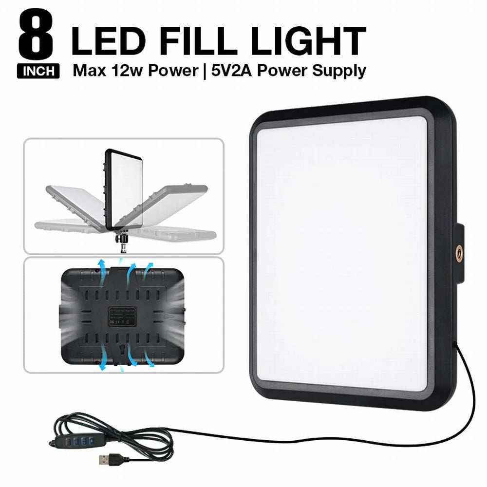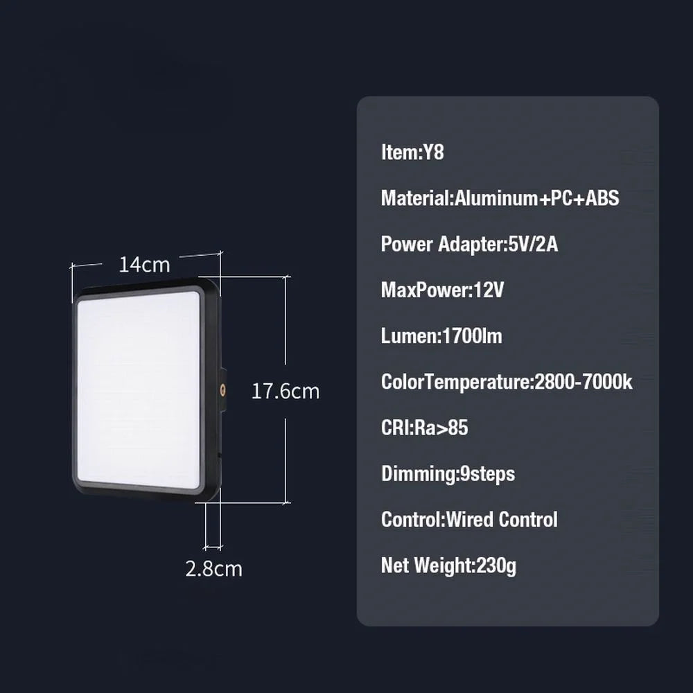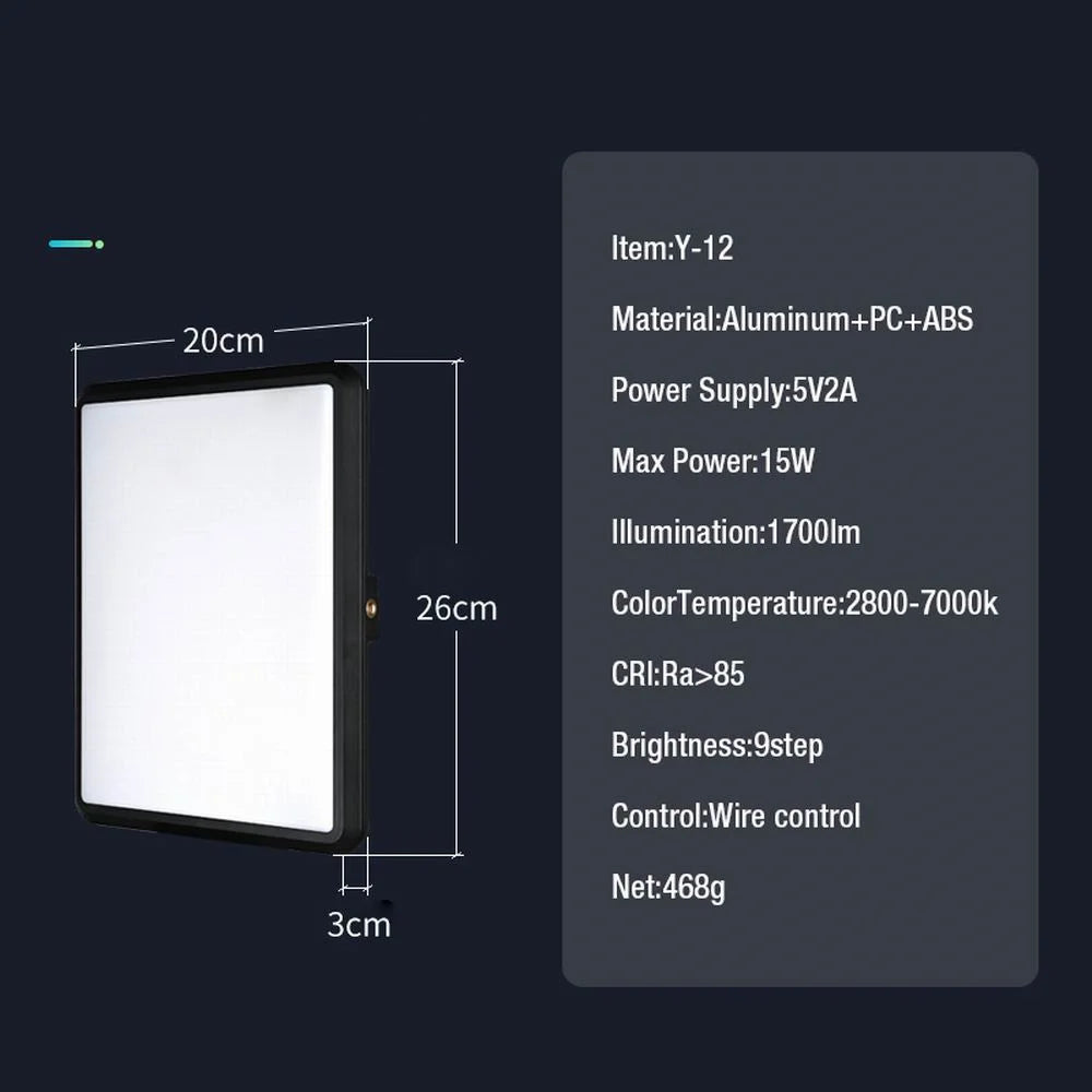 Con un CRI superior a 85, garantiza colores reales y naturales, mientras que su control por cable con 9 niveles de brillo ofrece máxima flexibilidad. El diseño compacto en aluminio y ABS lo convierte en una herramienta ligera pero duradera, perfecta para creadores de contenido, fotógrafos y videógrafos.