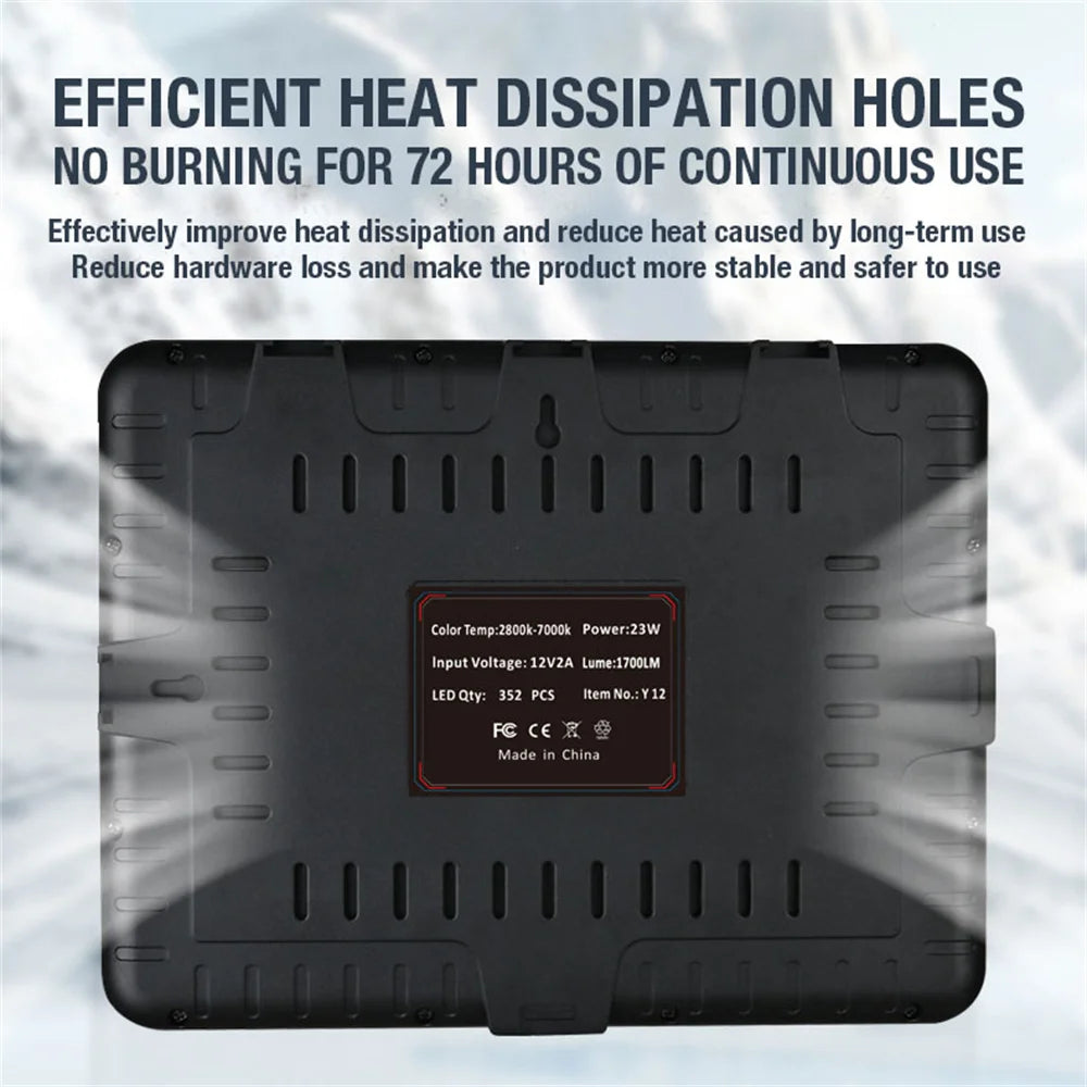 • 12” con 352 LEDs – potencia 15W, peso 468 g. -