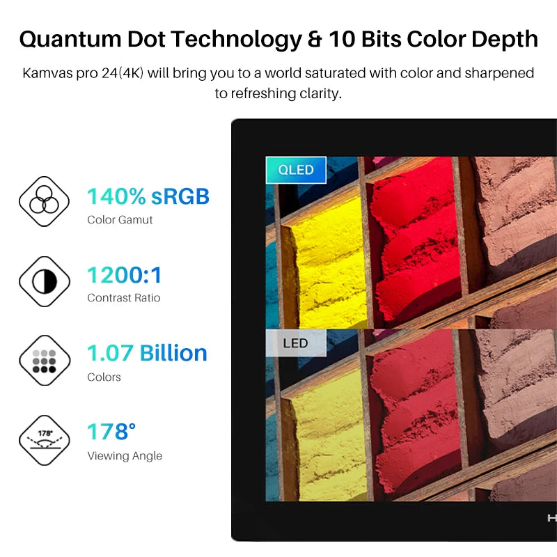 Huion Kamvas Pro 24 (4K UHD) | Tableta Gráfica con Pantalla 23.8”, 140% sRGB y Lápiz Digital sin Batería