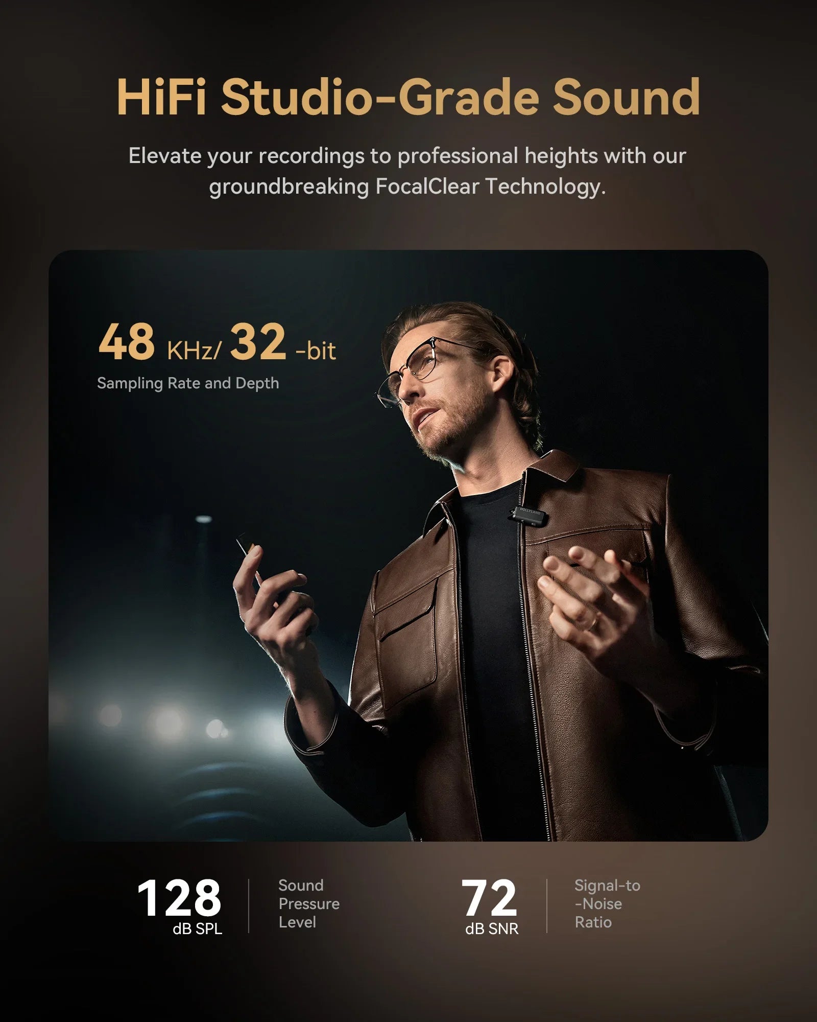Su micrófono lavalier omnidireccional captura cada detalle de la voz con naturalidad y claridad, mientras que su compatibilidad con laptops, tablets y smartphones lo convierte en una solución versátil para todo tipo de producción.