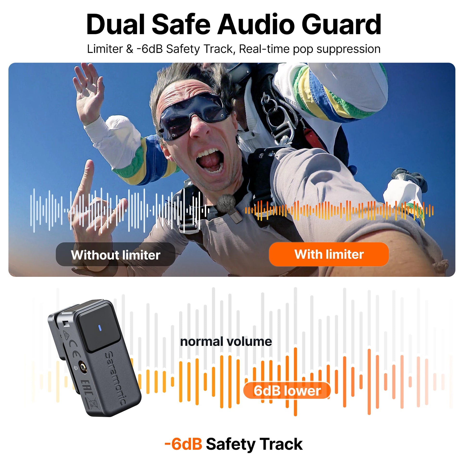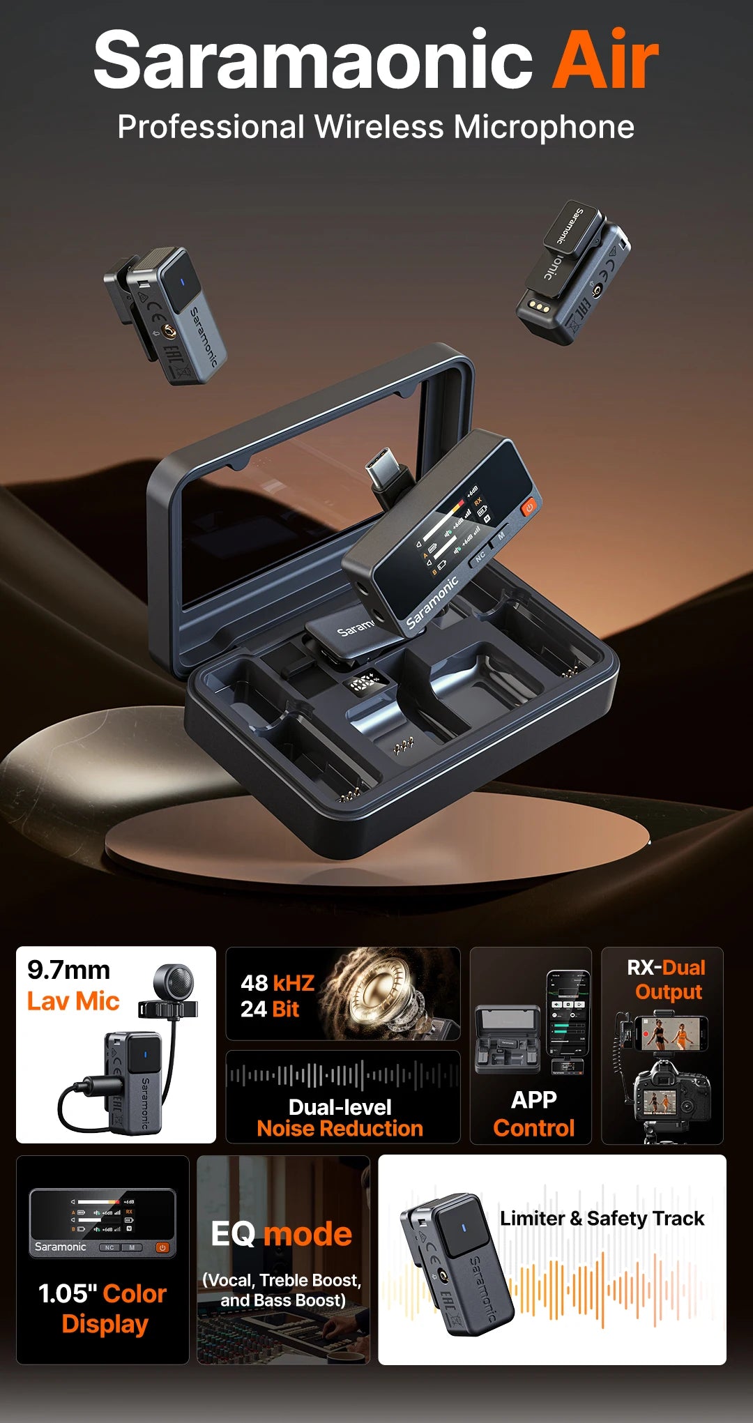 Saramonic Air Wireless Lavalier Microphone Noise Cancelling Lapel Mic for iPhone 15/16 Android Smartphone Camera Vlog Youtube