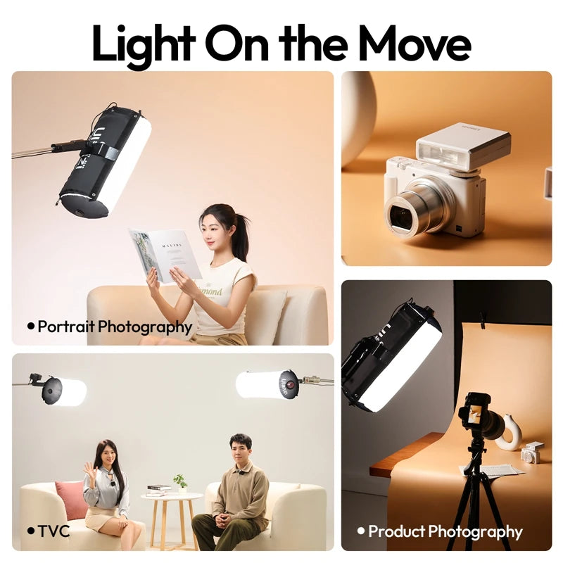La Ulanzi AL60/AL120 Inflatable LED Light redefine la iluminación portátil para fotografía y video. Con un diseño inflable, ligero y fácil de transportar, ofrece una luz suave y uniforme que simula una caja de luz tradicional, ideal para retratos, entrevistas, grabaciones en estudio o producciones en exteriores.