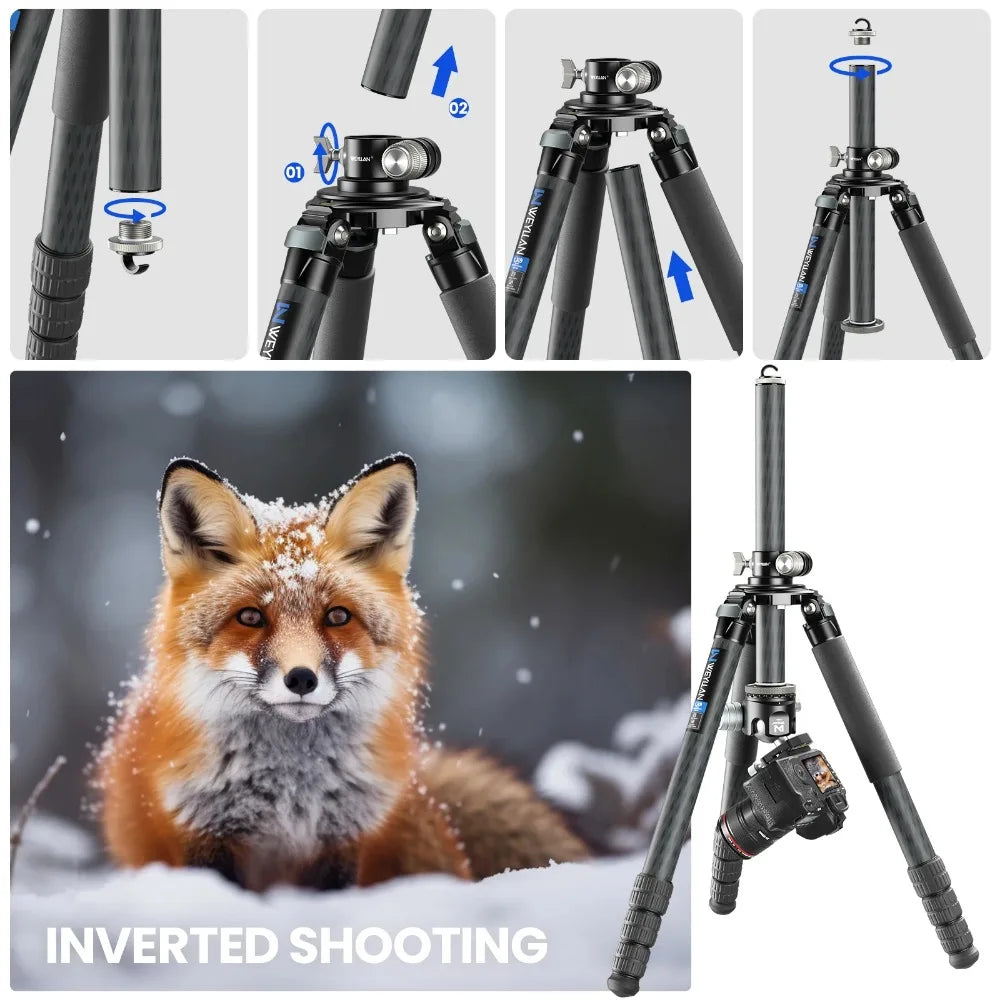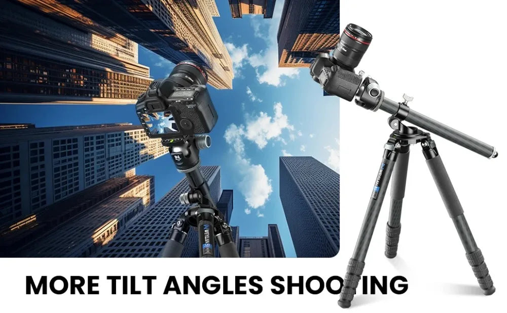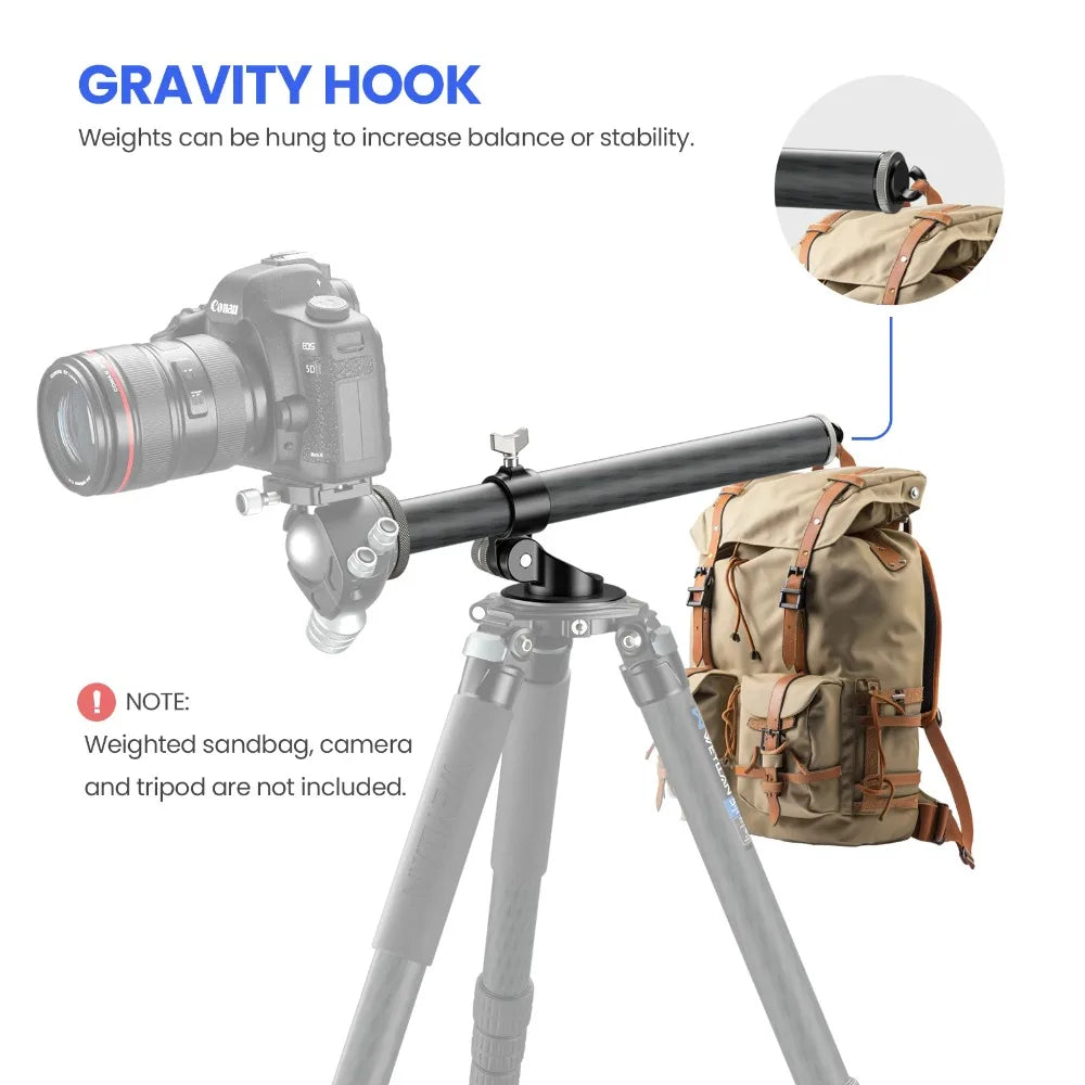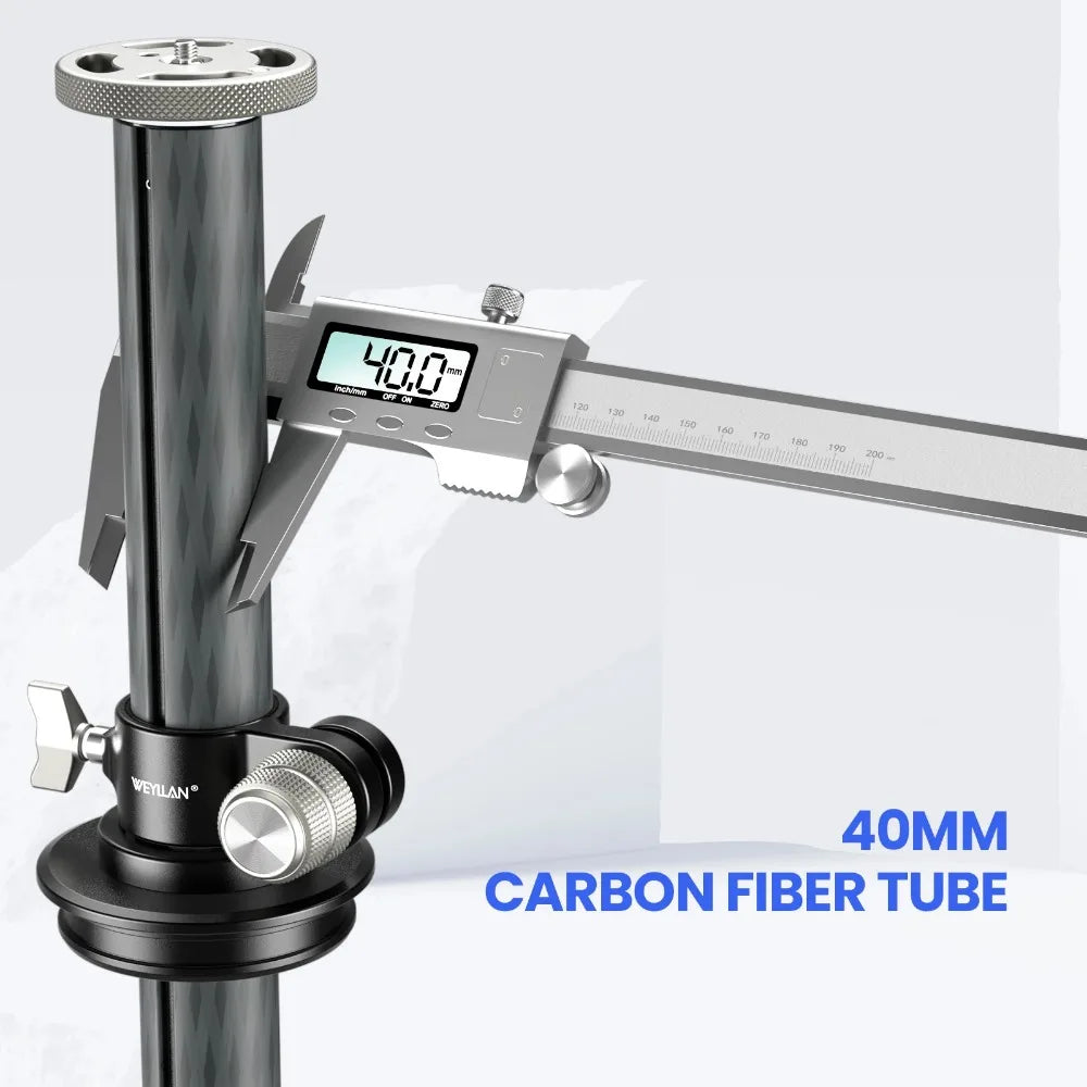 El WEYLLAN TZ8 es un brazo extensor universal 2 en 1 para trípodes profesionales, que combina una columna central con un brazo horizontal desmontable en un solo accesorio. Diseñado en fibra de carbono de 10 capas y aluminio de alta resistencia, ofrece ligereza, durabilidad y máxima estabilidad para cámaras DSLR, mirrorless, de acción y smartphones.