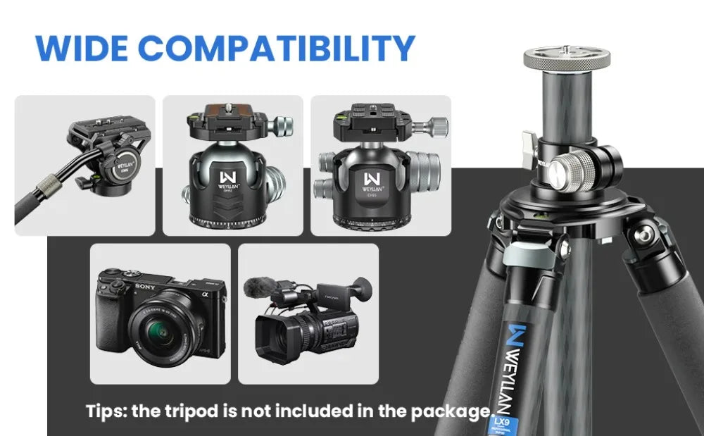 Con el WEYLLAN TZ8 tendrás un accesorio imprescindible para tu trípode, perfecto para fotógrafos y videógrafos que buscan estabilidad, flexibilidad y profesionalismo en cada toma.